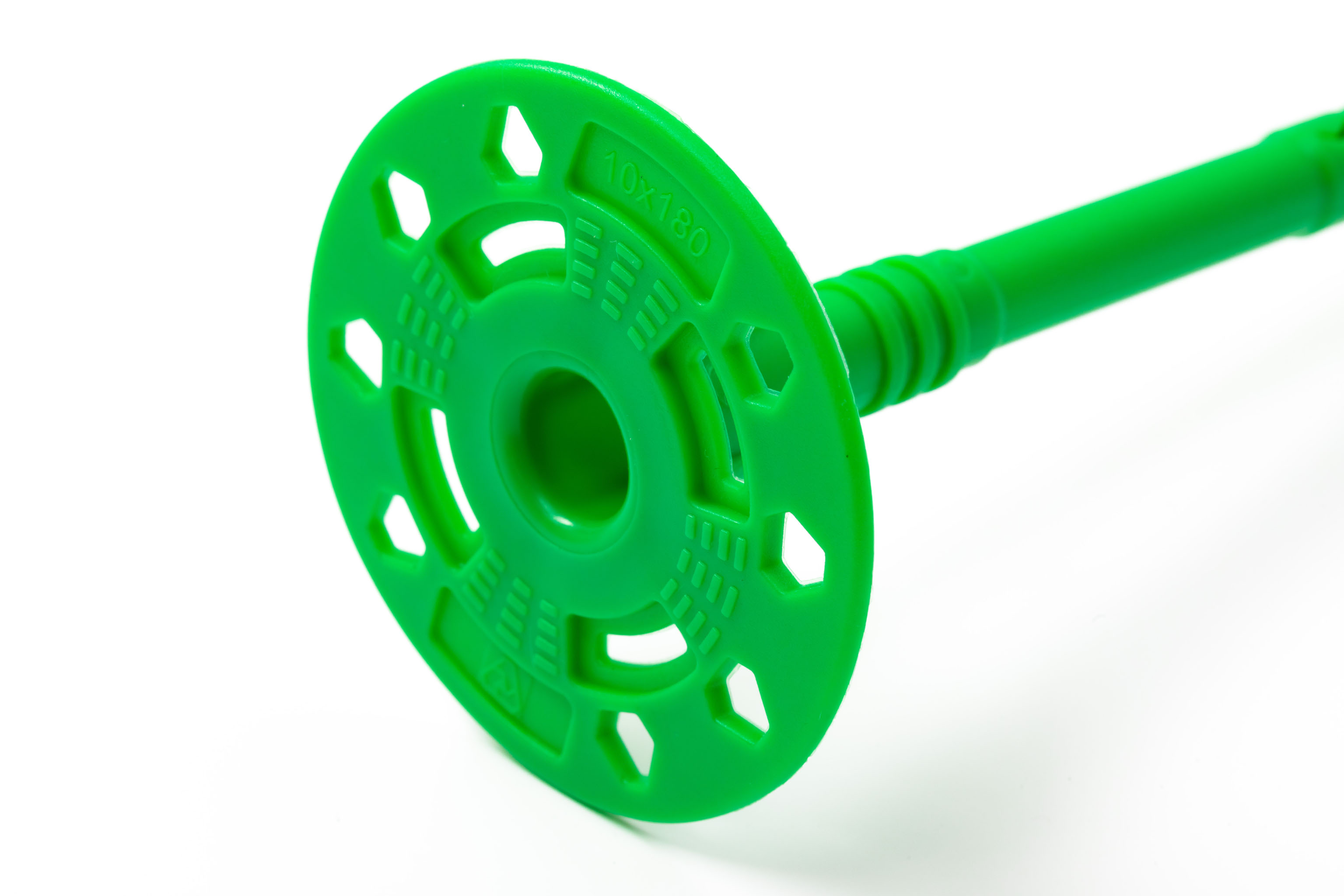 Фасадный полимерный тарельчатый дюбель диаметром 10 мм, длиной от 140 до 300 мм, диаметром тарельчатого элемента 60 мм, со стальным гвоздем с термоизоляционной головкой длиной 22 мм, для крепления теплоизоляционных материалов толщиной 30-270 мм к внутренним и наружным стенам в мало- и многоэтажном строительстве.