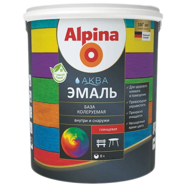 • База 1 может применяться как белая эмаль, а также заколерованная машинным способом с помощью Alpina ColorMix.