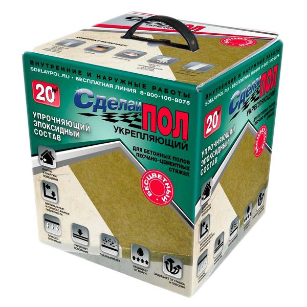 Сделай Пол «Укрепляющий» - двухкомпонентный эпоксидный состав глубокого проникновения, предназначен для упрочнения и обеспыливания бетонных полов, а также для защиты и консервации деревянных поверхностей от влаги.