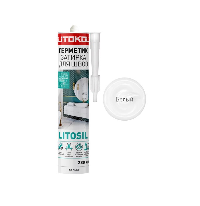 LITOSIL — это высокоэластичный герметик-затирка на основе силикона кислотного отверждения. Предназначен для заполнения межплиточных швов и примыканий.