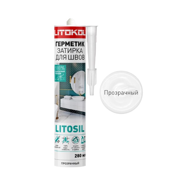 LITOSIL — это высокоэластичный герметик-затирка на основе силикона кислотного отверждения. Предназначен для заполнения межплиточных швов и примыканий.