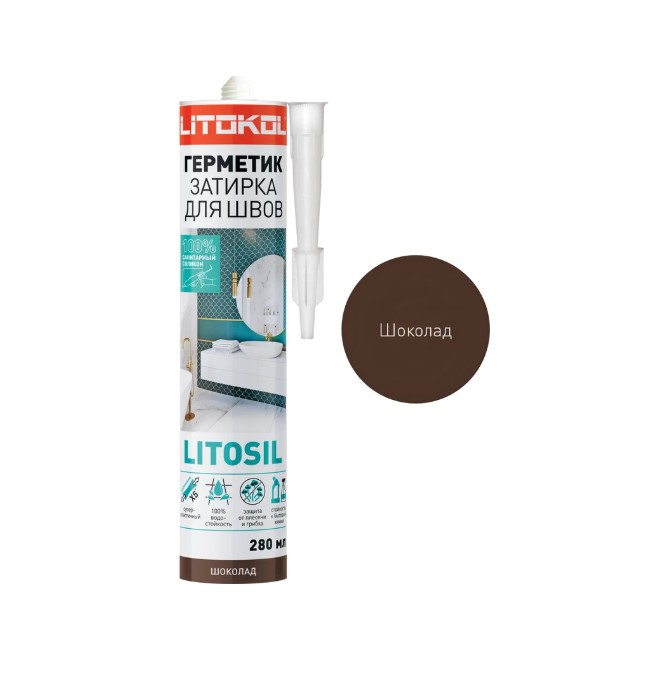 Герметик-затирка Litokol LITOSIL высокоэластичный санитарный силиконовый шоколад 280 мл