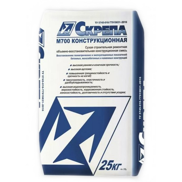 Сухая строительная ремонтная объемно-восстановительная конструкционная смесь. Состоит из портландцемента, кварцевого песка определенной гранулометрии, комплекса химических добавок и армирующего фиброволокна.