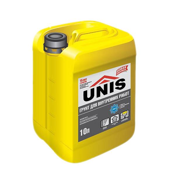 Грунт для внутренних работ Unis обладает низким показателем расхода, сокращает расход краски, клеев и других наносимых материалов. Обладает антисептическими свойствами. Грунтовка быстро высыхает, после высыхании не липнет, за счет чего очень удобна в работе. Наносится с помощью валика, щетки, кисти или распылителя. Расход составляет 0,12 л/м?.