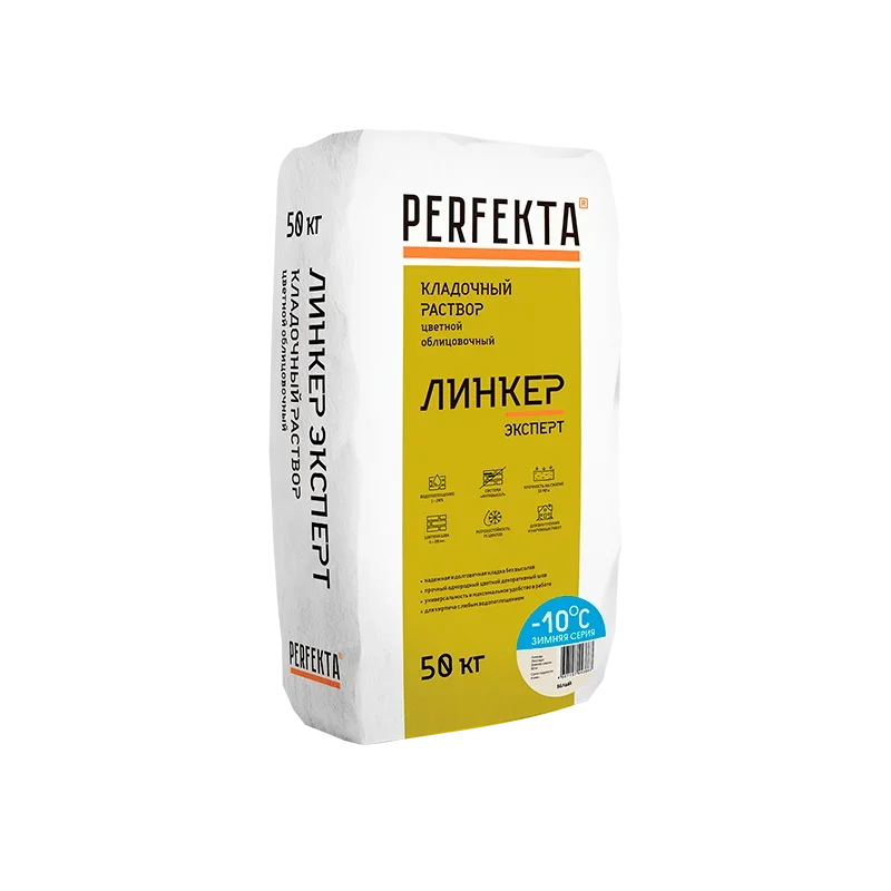 Цветной облицивочный кладочный раствор Perfekta “ЛИНКЕР Эксперт” ЗИМНЯЯ СЕРИЯ предназначен для выполнения работ при отрицательных температурах по созданию прочного, долговечного, паропроницаемого, водо- и морозостойкого кладочного шва между элементами кладки с любым водопоглощением (полнотелый и пустотелый облицовочный керамический и клинкерный кирпич, рядовой керамический и силикатный кирпич, кирпичи или блоки из бетона и натурального камня) с одновременной декоративной расшивкой швов кладки.