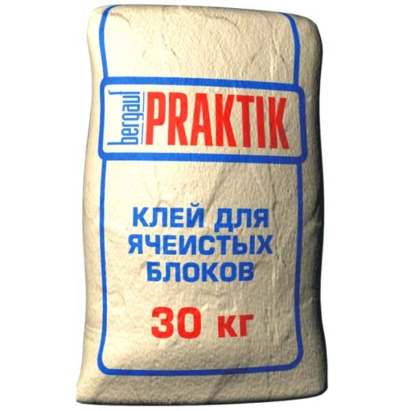 Специализированный клеевой состав Bergauf Praktik на цементной основе для кладки внутренних и наружных стен из ячеистого бетона, силикатного кирпича и других материалов с повышенной пористостью.