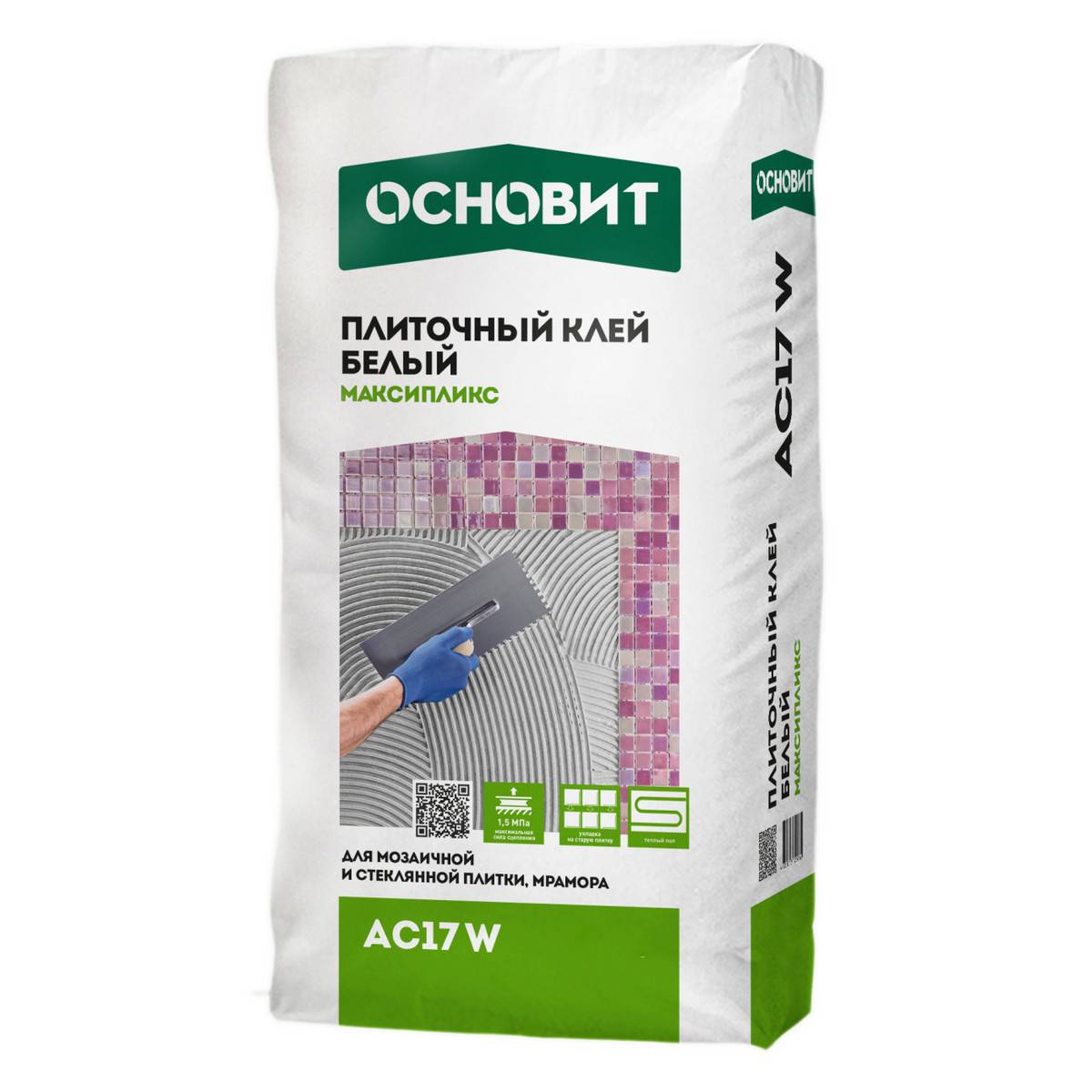 Плиточный клей Основит Максипликс АС17 W предназначен для облицовки стен и пола плитами из мрамора, цветной и прозрачной стеклянной плиткой, декоративной мозаикой, стекло-блоками, гранитом, натуральным и искусственным камнем. Используется для облицовки искусственных водоемов, чш бассейнов, каминов. Рекомендуется для облицовки балконов, террас, цоколей, фасадов, полов с подогревом. Для внутренних и наружных работ.