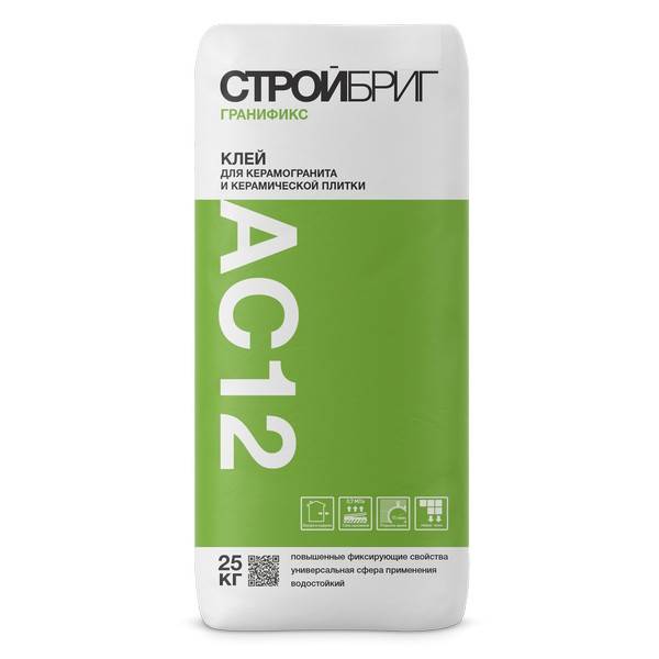Клей плиточный Стройбриг Гранификс АС12 применяется для укладки плитки и керамогранита. Предназначен для фасадов зданий, пола и стен в зданиях с обычной и высокой влажностью. Показывает хорошую адгезию с различными видами оснований: кирпич, бетон, штукатурка, газобетон, пенобетон и др.