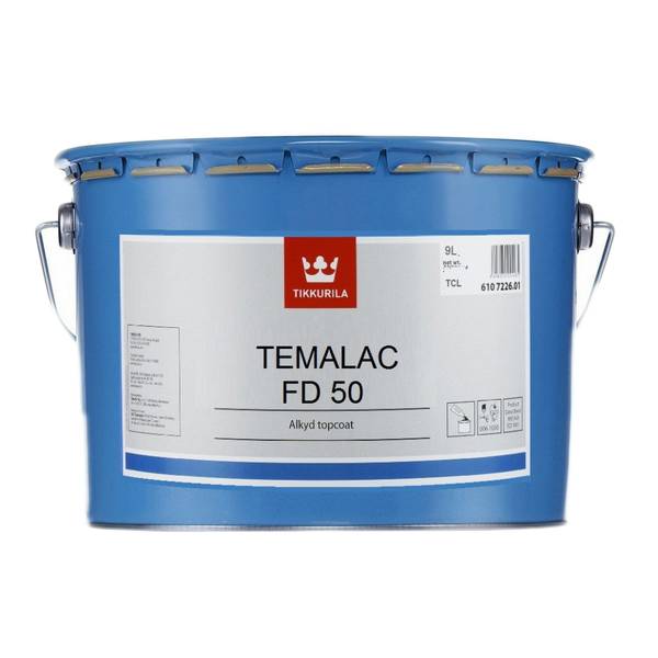 Полуглянцевая однокомпонентная, алкидная покрывная краска, содержащая противокоррозионные пигменты для окраски стальных каркасных и опорных конструкций. Темалак ФД 50 рекомендуется для окраски стальных каркасных и опорных конструкций, различного рода станков и оборудования. Наносится также электростатистическим распылением. Темалак ФД 50 обладает отличными блеско- и цветоустойчивостью при атмосферном воздействии. Благодаря наличию противокоррозионных пигментов может также применяться в качестве системы однослойного покрытия.