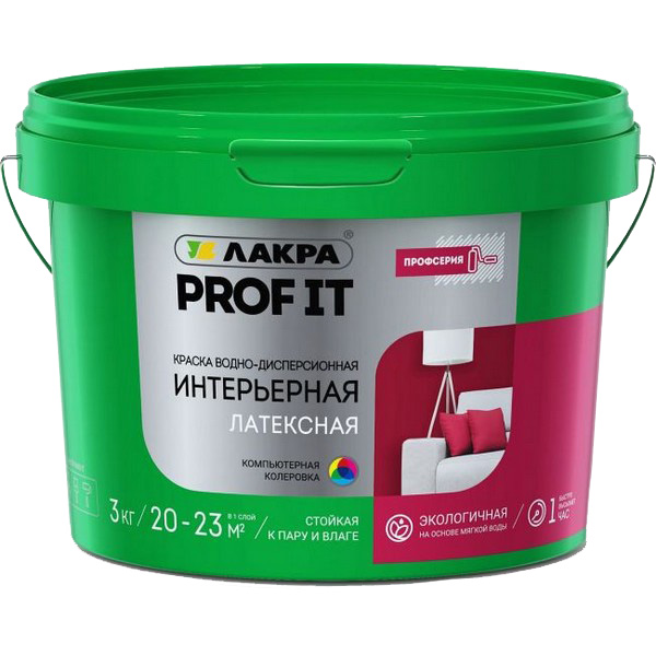 Высококачественная краска на основе водной акриловой дисперсии применяется для окраски стен и потолков в помещениях с умеренной эксплуатационной нагрузкой и нормальной влажностью. Наносится на бетонные, кирпичные, оштукатуренные и др. минеральные поверхности. Обладает прочным сцеплением с окрашиваемой поверхностью, хорошими декоративными свойствами и укрывистостью. Образует супербелое матовое влагостойкое покрытие, допускающее протирку влажной тканью.