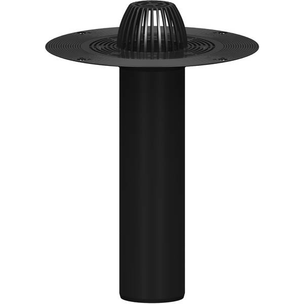 Кровельная воронка ТП-02.100/6 с листвоуловителем, без прижимного фланца из нержавеющей стали, с вертикальным выходом D 110, высотой 102мм, с технологическими отверстиями для дополнительной фиксации к основанию кровли – ж/б перекрытиям, профнастилу из стального листа. Предназначены для сбора и отведения сточных дождевых и талых вод с поверхности кровель. Для предотвращения замерзания воды в приемном отверстии, в отверстии, в переходное время года (осень-зима-весна), все кровельные воронки Татполимер, могут быть оснащены системой обогрева. Система обогрева включает в себя обод фиксации, в который укладывается саморегулирующийся кабель и крепит его к корпусу воронки. Используемый саморегулирующийся кабель с рабочим напряжением 220В, мощностью 15Вт меняет свою теплоотдачу в зависимости от температуры окружающей среды. Для ограничения подогрева и экономии электроэнергии, рекомендуется подключение саморегулирующегося кабеля через термостат, работающий в диапазоне температур -5С до +5С. В противном случае, обогрев будет осуществляться при более низких минусовых температурах, что не является обязательным, так как во время морозов снег на кровле не тает, и нет необходимости в отводе воды.