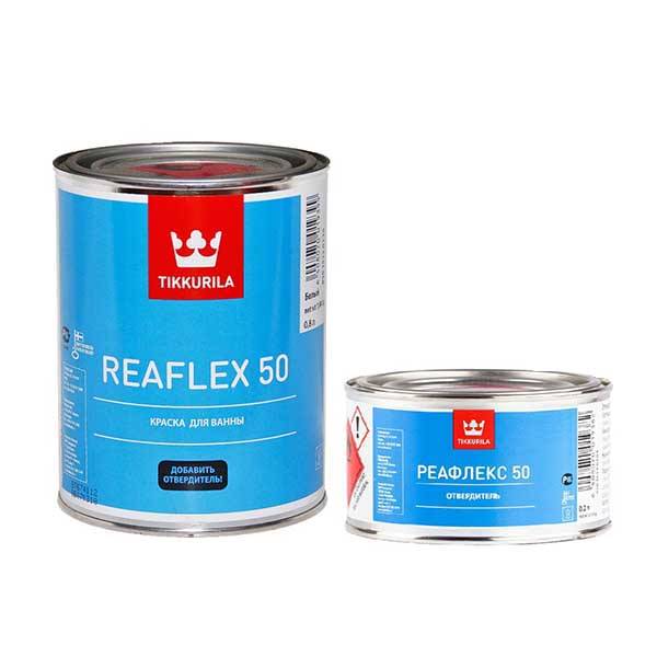 Реафлекс 50 – двухкомпонентный продукт, состоящий из отвердителя и непосредственно красящего состава. Перед началом работы их необходимо смешать: на 4 части краски добавить 1 часть отвердителя. Получившийся раствор сохраняет жизнеспособность около 4 часов.