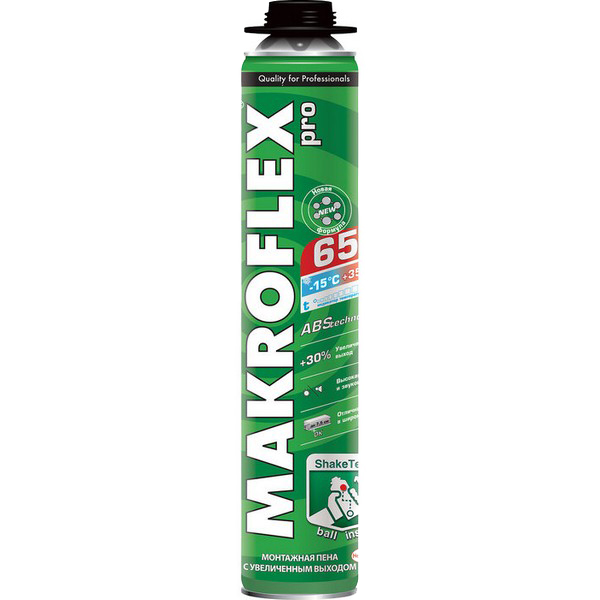 Макрофлекс ShakeTec 65 Профессиональная – монтажная пена с обновленной формулой: повышен выход монтажной пены, а также значительно улучшена стабильность характеристик пены!
