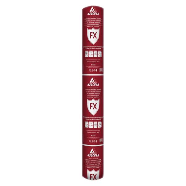 Материал для пароизоляции Изоспан FX представляет собой слой вспененного полиэтилена толщиной от 2 до 5 мм, дублированного с одной стороны металлизированной пленкой. Пенополиэтилен выполняет функции теплоизоляции благодаря своей структуре из изолированных пузырьков воздуха. Слой металлизированной пленки выполняет функции паро-, гидроизоляции в сочетании с эффектом отражения тепла. Обладая такими свойствами как гибкость, упругость, эластичность, химическая и биологическая стойкость, гидрофобность и низкое водопоглощение, высокие амортизирующие свойства, устойчивость к ударным нагрузкам, экологическая безопасность, долговечность, Изоспан FX является одним из самых экономичных энергосберегающих строительных материалов: занимает минимальный объём, экономит пространство, а также обладает функцией отражающего экрана.