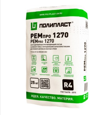 Безусадочная быстротвердеющая сухая смесь наливного типа с улучшенными характеристиками, содержащая гибкую неметаллическую фибру, предназначенная для конструкционного ремонта бетона и железобетона в сжатые сроки. Класс R4 согласно ГОСТ Р 56378-2015. Толщина нанесения при температуре от –10°С до +15°С составляет 20 – 100 мм, при температуре от +15°С до +30°С составляет 10 – 70 мм.
