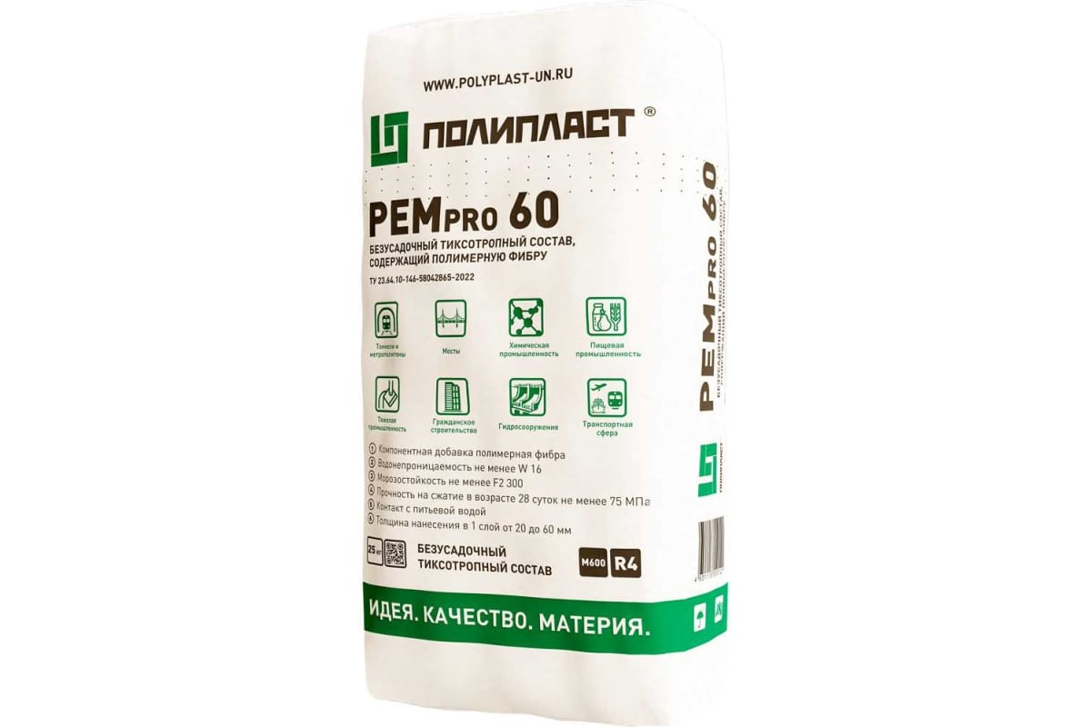 РЕМпро 60 – это сухая смесь с максимальной крупностью заполнителя 2,5 мм, которая после смешивания с водой образует реопластичный, тиксотропный гомогенный состав, легко наносимый на поверхность конструкций без применения опалубки. Не содержит хлоридов и металлических заполнителей. Температура применения РЕМпро 60: от + 5°С до +35°С. Изготавливается по ТУ 23.64.10-147-58042865-2022.