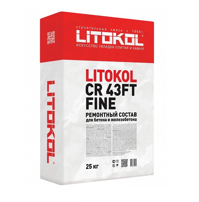 Состав: ремонтная смесь LITOKOL CR 43FT Fine | Вес: 25 кг | Применение: конструкционный и неконструкционный ремонт бетона
