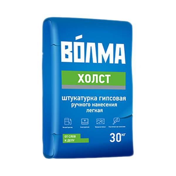 Сухая штукатурная смесь Волма Холст изготавливается на основе гипсового порошка с легким заполнителем, химическими и минеральными добавками, обеспечивающими адгезию раствора к поверхности, его водоудерживающую способность. Материал предназначен для ручного нанесения.