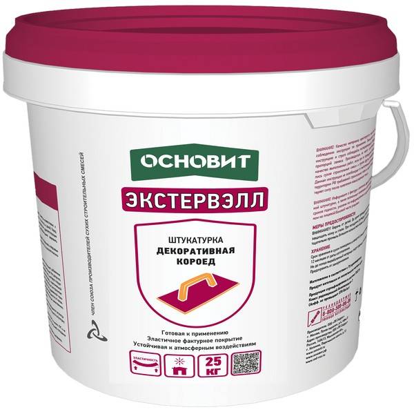 Готовая к применению штукатурка декоративная Основит Экстервэлл фактура “короед” предназначена для создания тонкослойного декоративно-защитного покрытия при отделке различных поверхностей, в т.ч. при устройстве системы фасадной теплоизоляции Основит.
