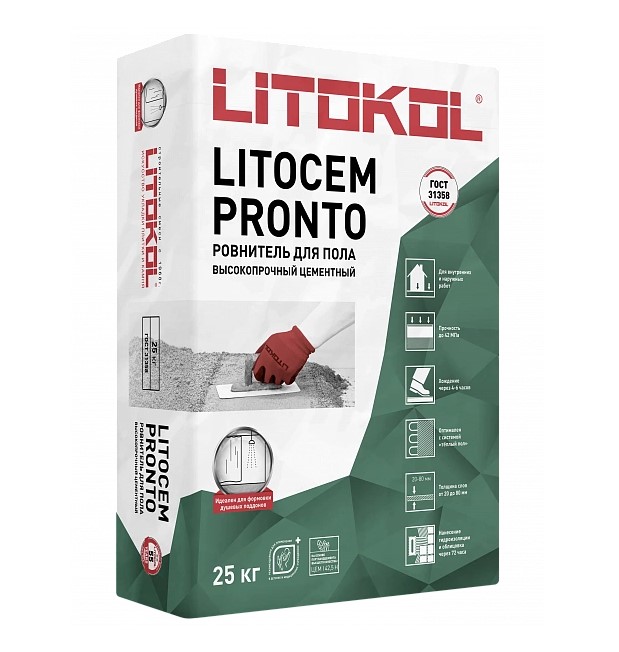 LITOKOL LITOCEM PRONTO (25 кг) — быстросохнущий цементный ровнитель для устройства пола.