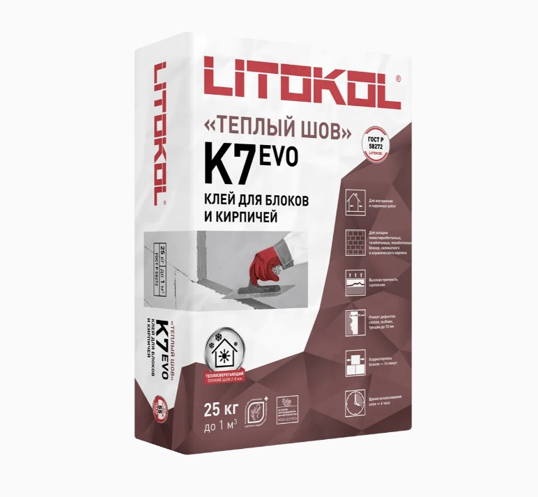 LITOKOL Betonkol K7 25 кг — клей «теплый шов» для кладки стен и перегородок из блоков и кирпича.
