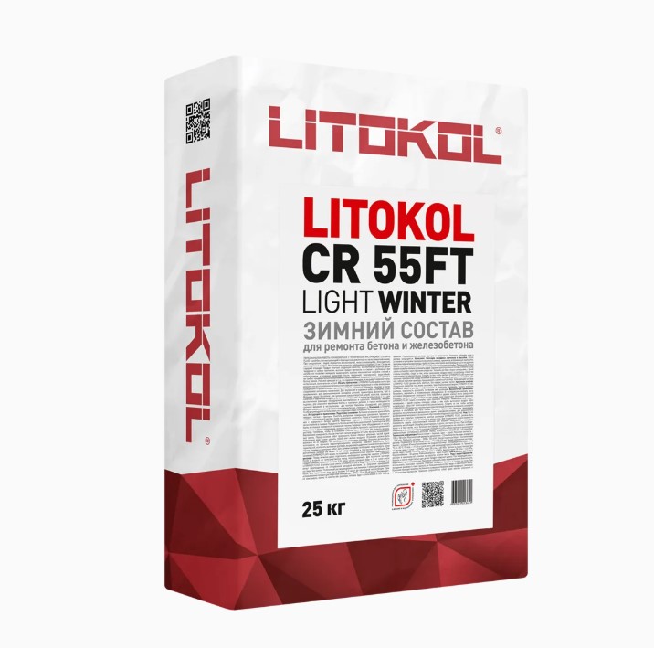 Состав: ремонтная смесь LITOKOL CR 55FT Light Winter | Вес: 25 кг | Температура применения: от -10 °С до +10 °С