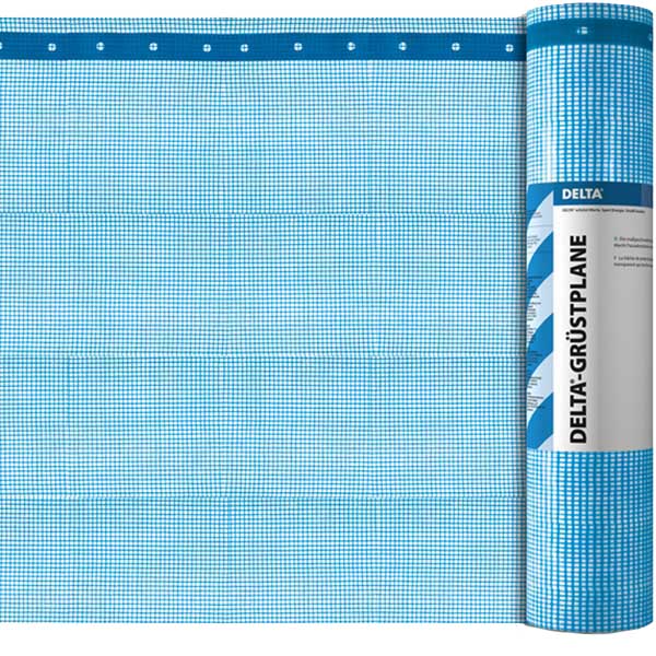 Полиэтиленовая плёнка Delta Gerustplane SE после её раскатки по высоте здания и фиксируемой установки защитит от ущерба, приносимого пожаром, строительные подмостки, леса, наружную отделку стен, утеплитель.