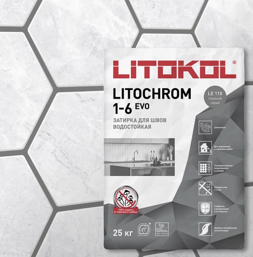 Затирка Litokol LITOCHROM 1-6 EVO LE 110 стальной серый (25 кг)