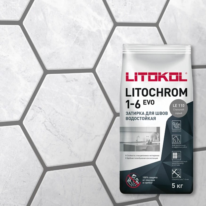 Затирка Litokol LITOCHROM 1-6 EVO LE 110 стальной серый (5 кг)