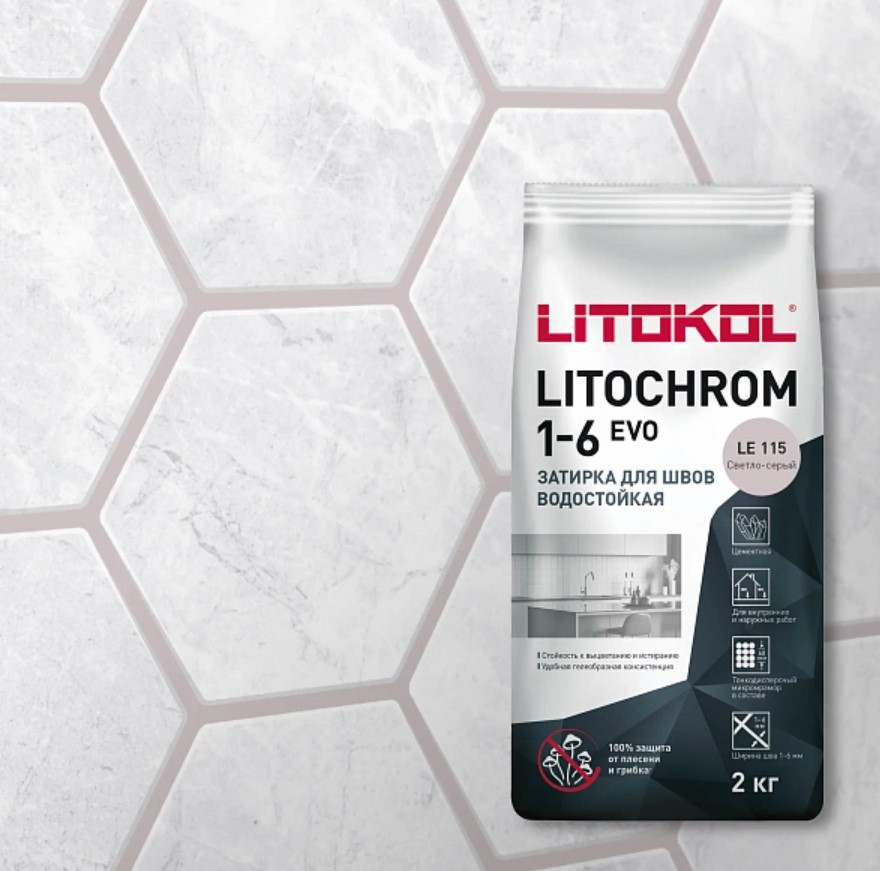 Затирка Litokol LITOCHROM 1-6 EVO LE 115 светло-серый (2 кг)