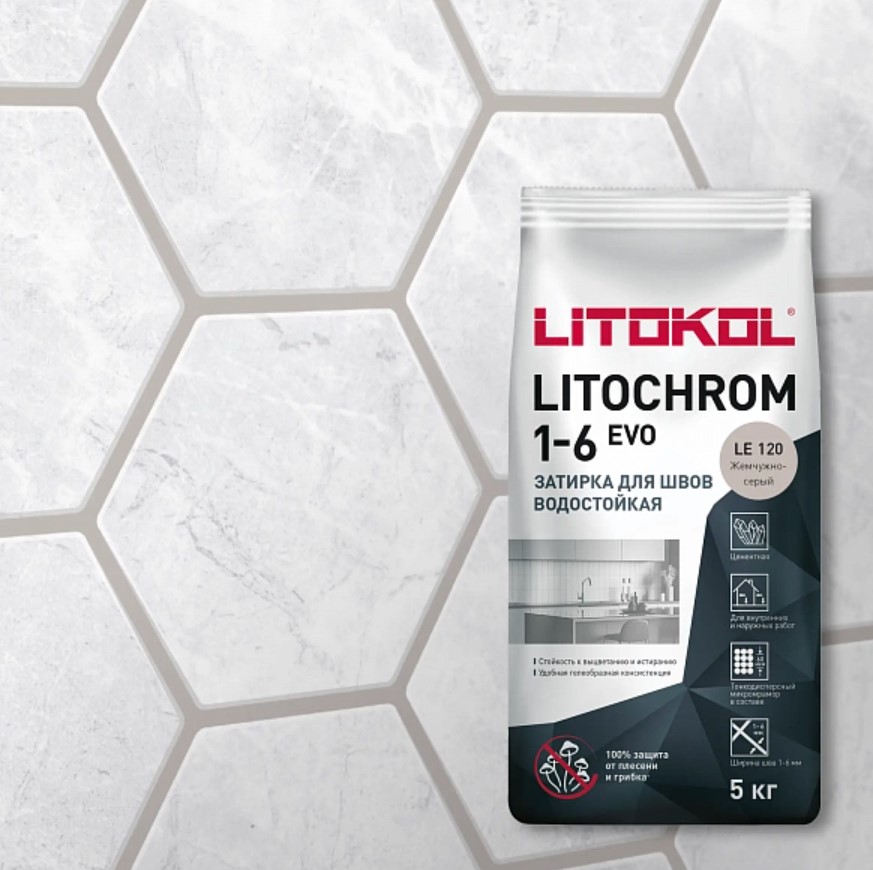 Затирка Litokol LITOCHROM 1-6 EVO LE 120 жемчужно-серый (5 кг)