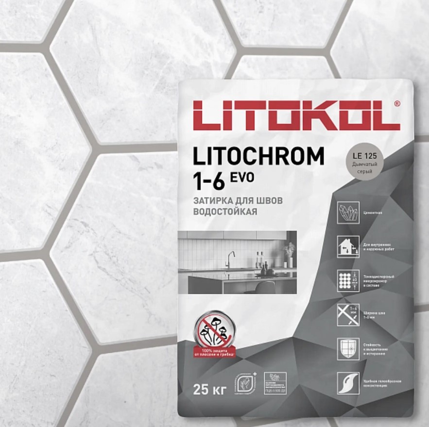 Затирка Litokol LITOCHROM 1-6 EVO LE 125 дымчатый серый (25 кг)