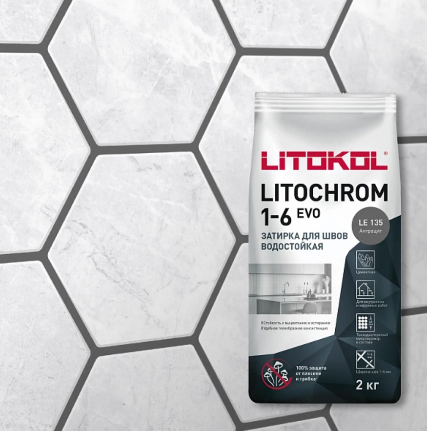 Затирка Litokol LITOCHROM 1-6 EVO LE 135 антрацит (2 кг)