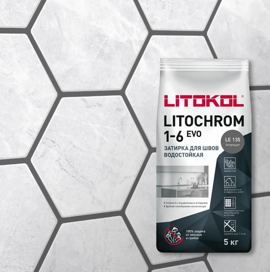 Затирка Litokol LITOCHROM 1-6 EVO LE 135 антрацит (5 кг)