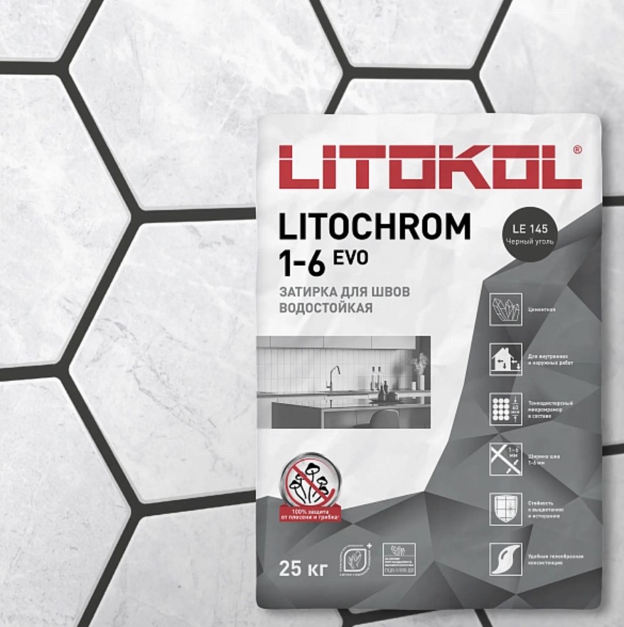 Затирка Litokol LITOCHROM 1-6 EVO LE 145 черный уголь (25 кг)