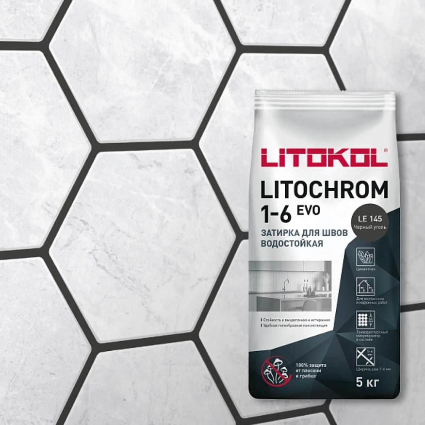 Затирка Litokol LITOCHROM 1-6 EVO LE 145 черный уголь (5 кг)