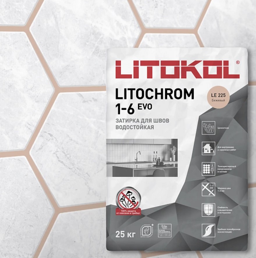Затирка Litokol LITOCHROM 1-6 EVO LE 225 бежевый (25 кг)