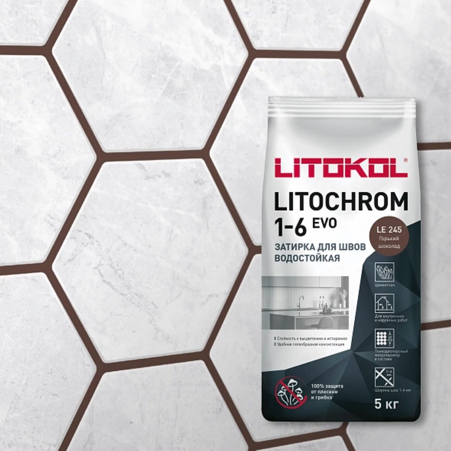Затирка Litokol LITOCHROM 1-6 EVO LE 245 горький шоколад (5 кг)