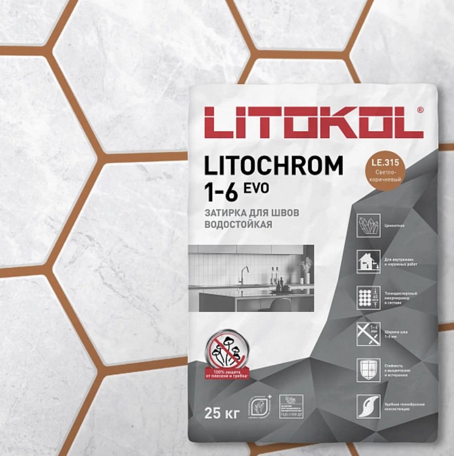 Затирка Litokol LITOCHROM 1-6 EVO LE 315 светло-коричневый (25 кг)