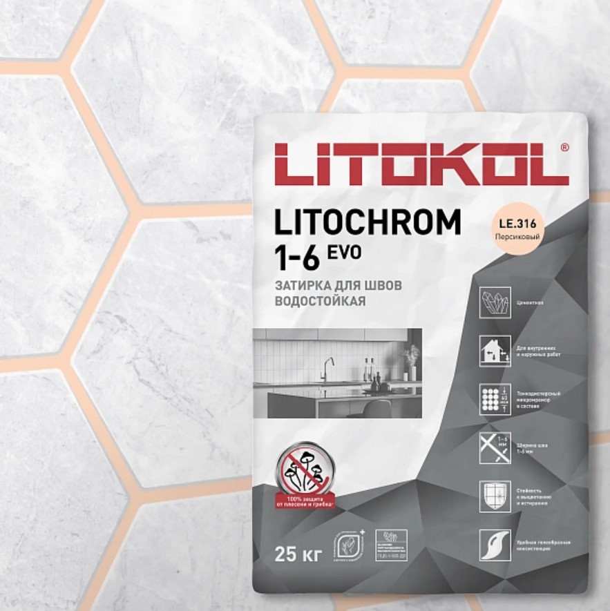 Затирка Litokol LITOCHROM 1-6 EVO LE 316 персиковый (25 кг)