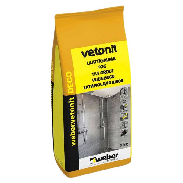 Weber.vetonit deco - цветная цементная затирка для межплиточных швов 1-8 мм. Применяться для наружных и внутренних работ, для любой плитки, керамогранита, натурального и искусственного камня, а так же мозаики.